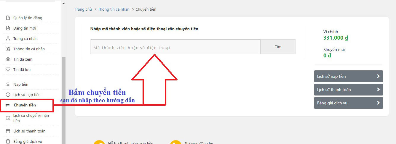2. HƯỚNG DẪN CHUYỂN TIỀN NỘI BỘ CÙNG HỆ THỐNG Nhà đất bán 24h