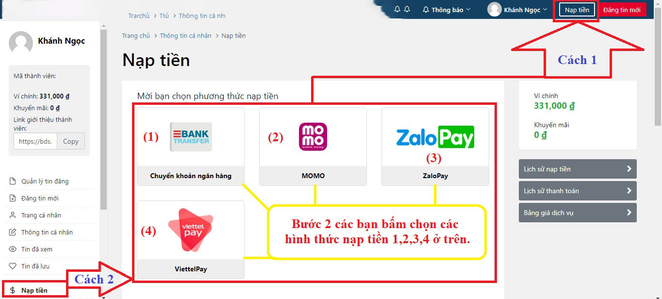 1. HƯỚNG DẪN NẠP TIỀN VÀO TÀI KHOẢN Nhà đất bán 24h