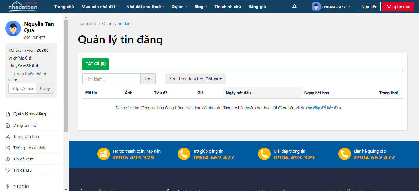 Người bán/ cho thuê sẽ được hỗ trợ đào tạo những kỹ năng cần thiết để quản tài khoản hoặc tin đăng trên Nhadatban24h.vn qua tổng đài hỗ trợ hoặc email đến bộ phận chăm sóc, tư vấn của Nhadatban24h.vn nếu được yêu cầu hỗ trợ